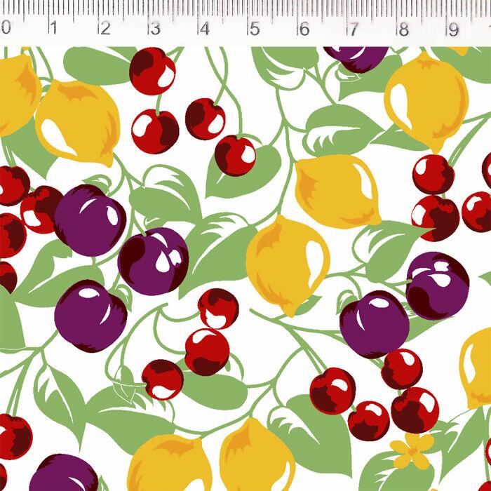 Descrição Tecido Tricoline Mix de Frutas Fundo Branco