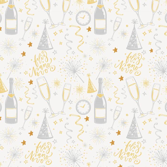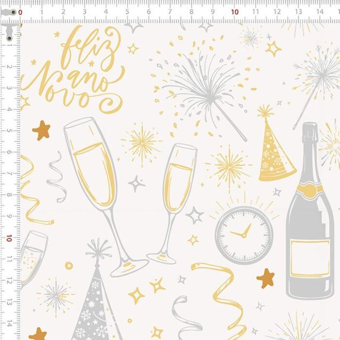 Tecido Tricoline Natal Champanhe Fundo Branco