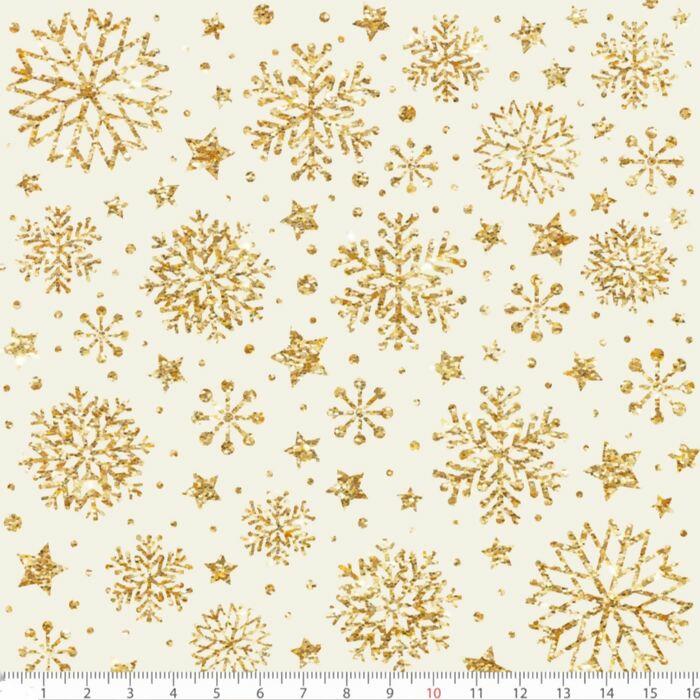 Tecido Tricoline Natal Flocos de Neve Fundo Bege