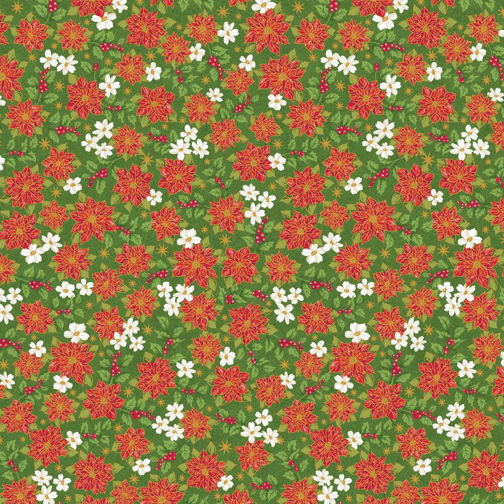 Descrição Tecido Tricoline Natal Floral Fundo Verde