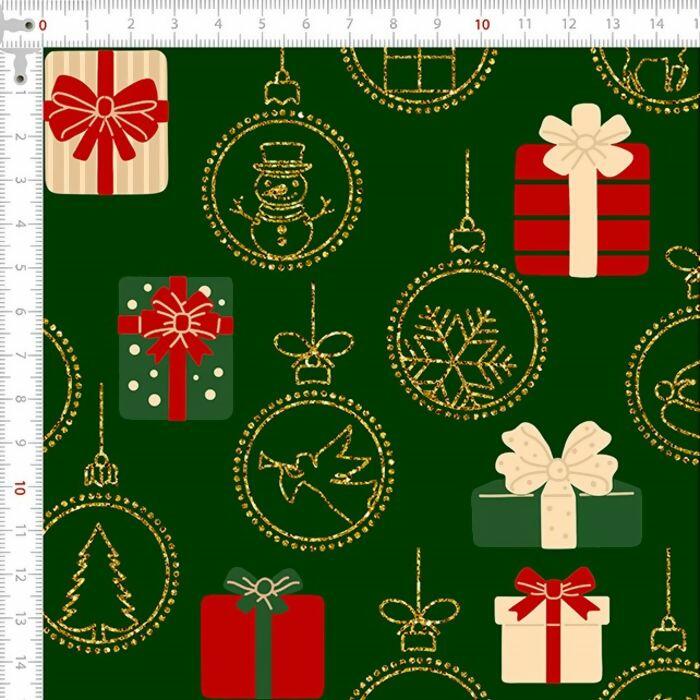 Descrição Tecido Tricoline Natal Presentes Fundo Verde