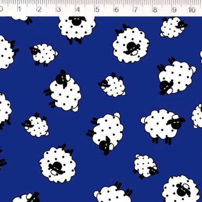 Descrição Tecido Tricoline Ovelhas Fundo Azul