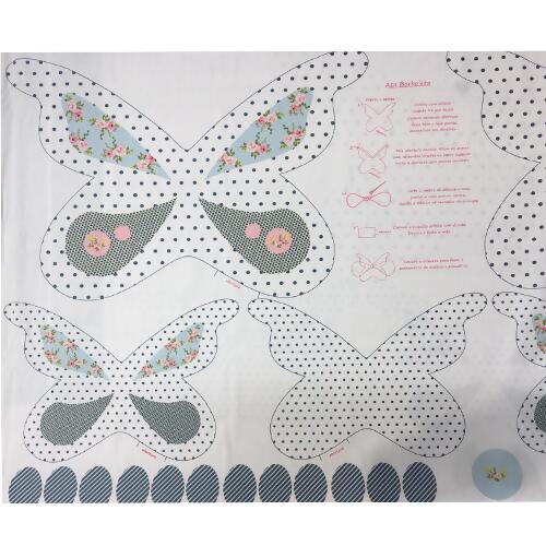 Descrição Tecido Tricoline Painel Borboleta Azul