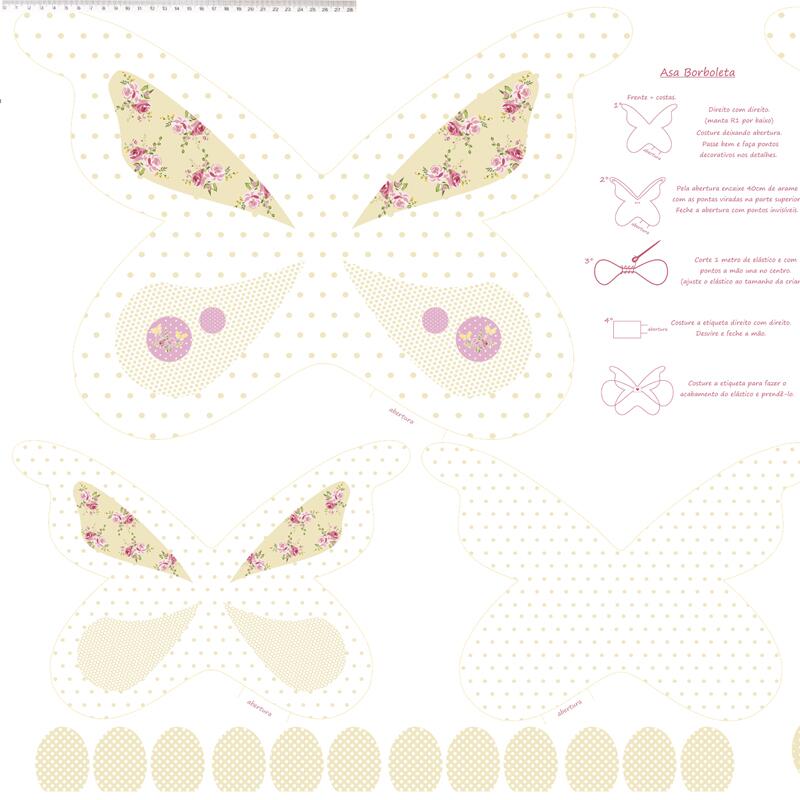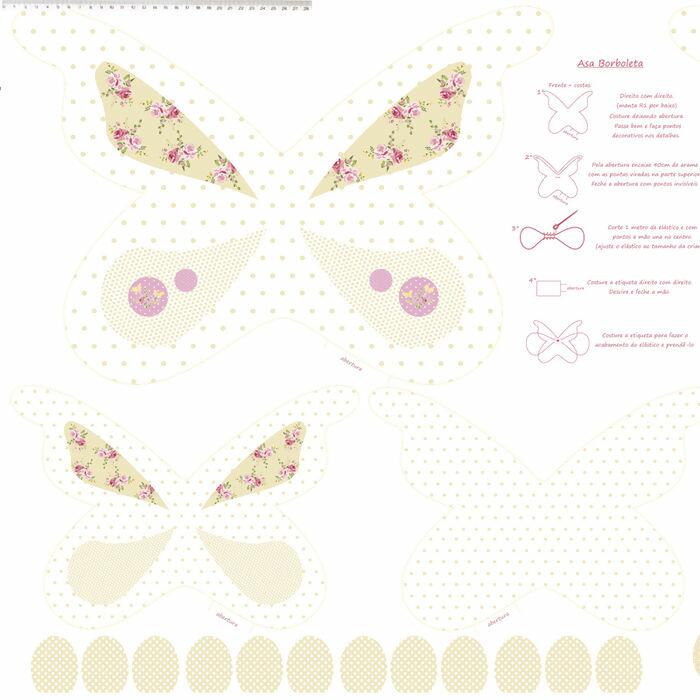Descrição Tecido Tricoline Painel Borboleta Bege