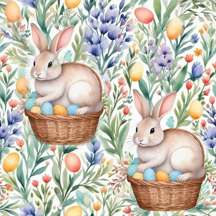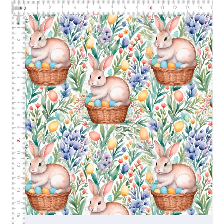 Descrição Tecido Tricoline Páscoa Coelho Cesta Floral