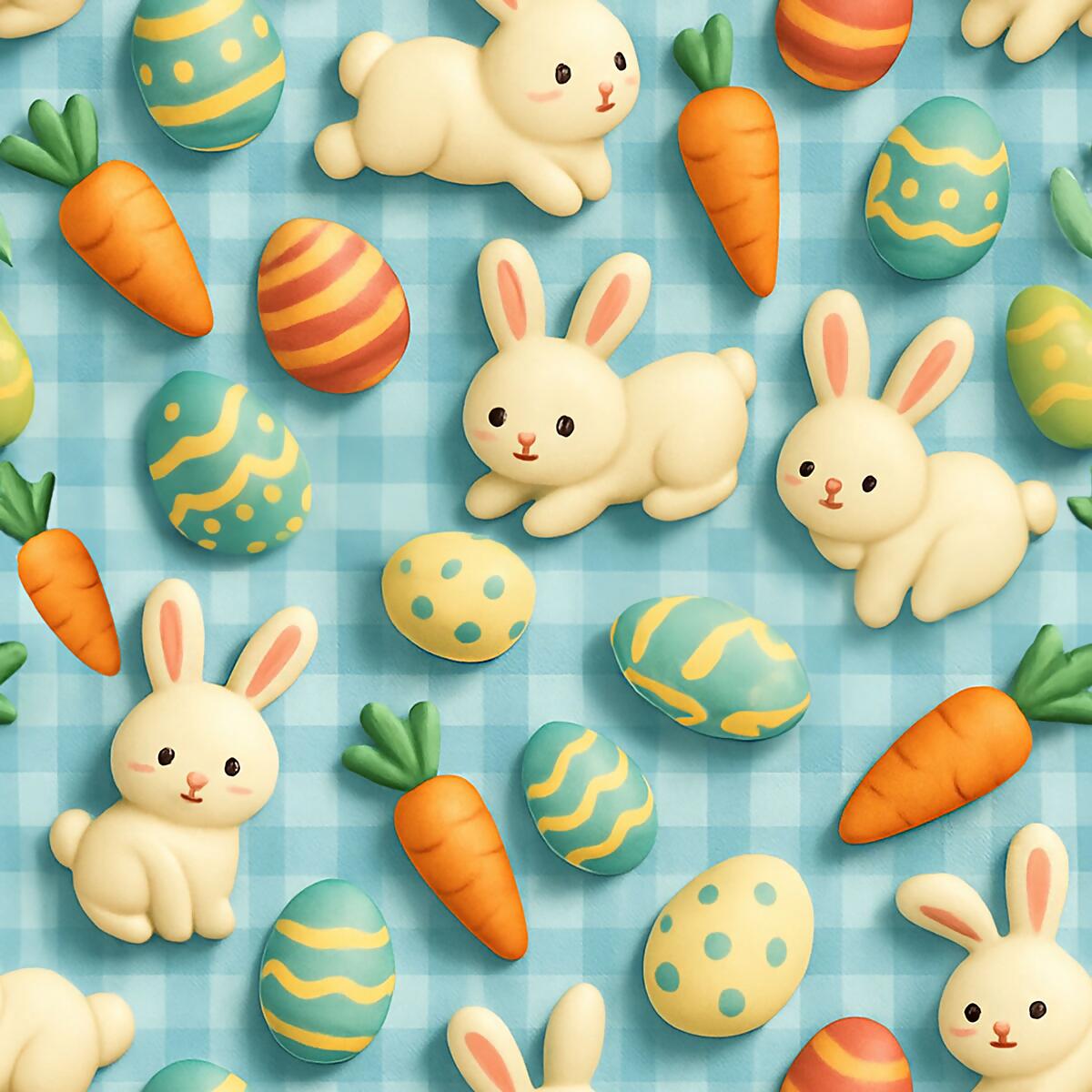 Descrição Tecido Tricoline Páscoa Coelho Ovo e Cenoura