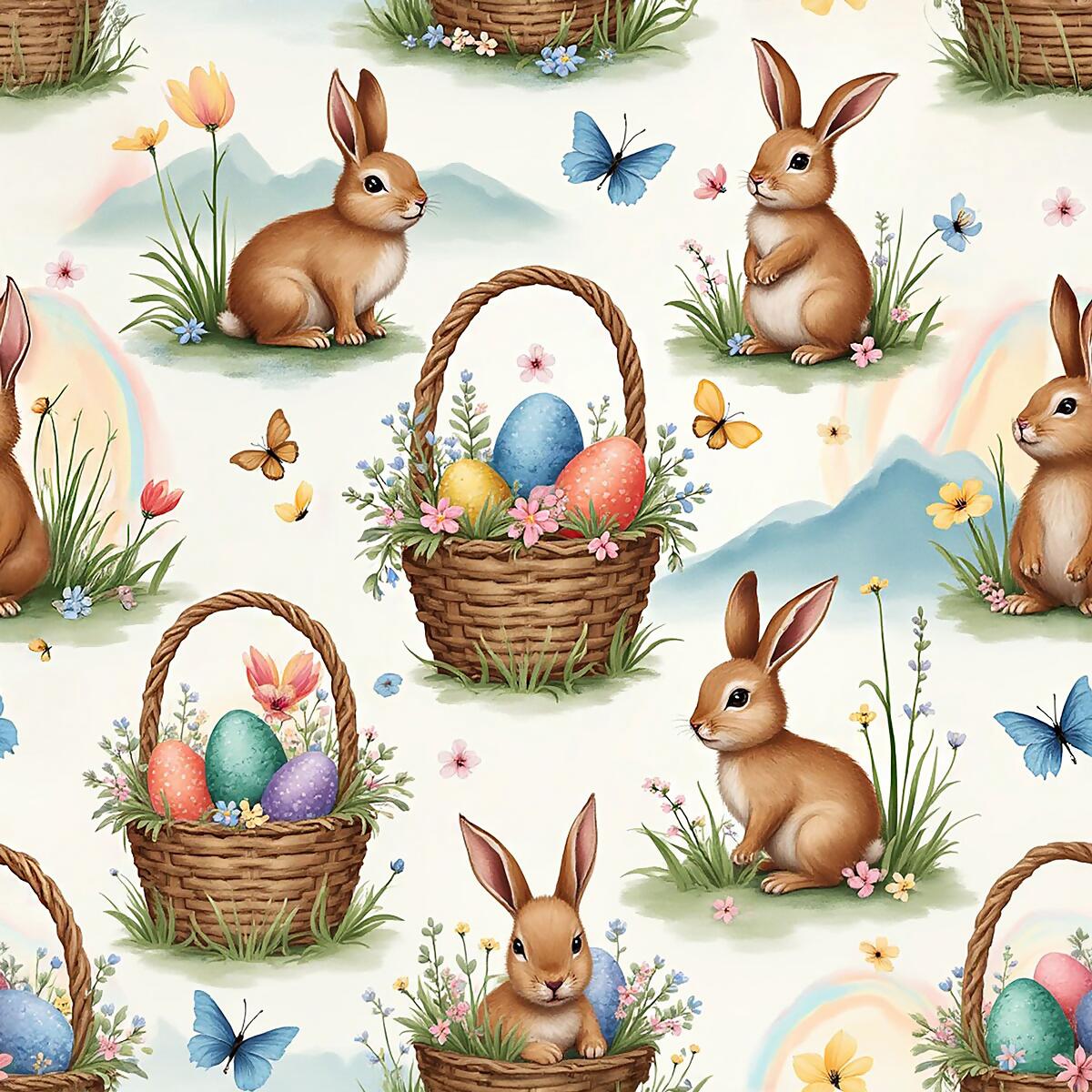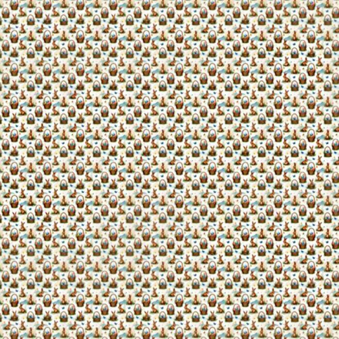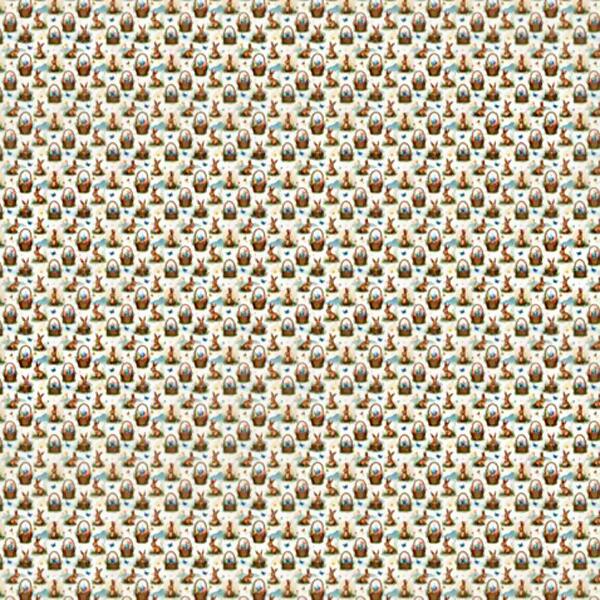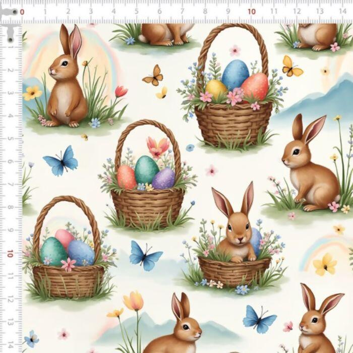 Descrição Tecido Tricoline Páscoa Coelhos e Cestos
