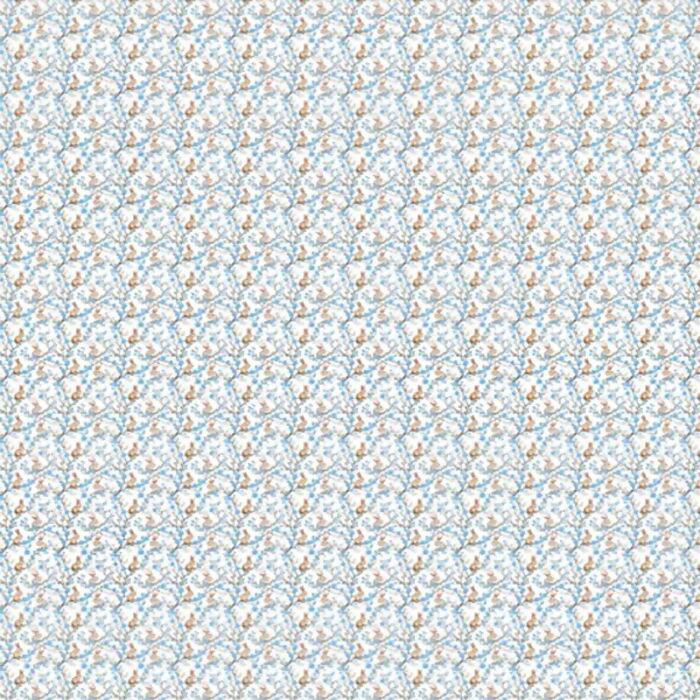 Descrição Tecido Tricoline Páscoa Coelhos Flores Azuis