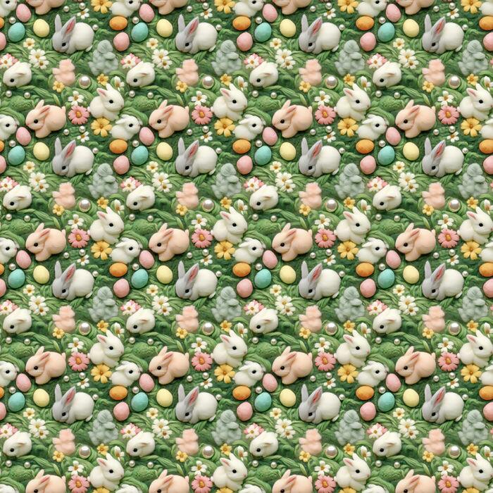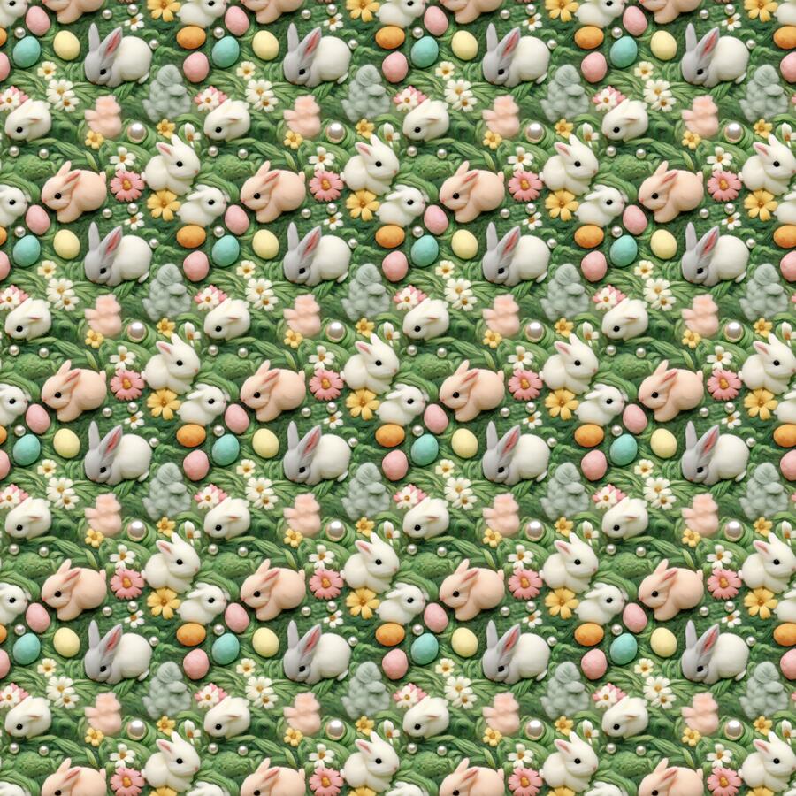 Tecido Tricoline Páscoa Coelhos Flores e Pérolas