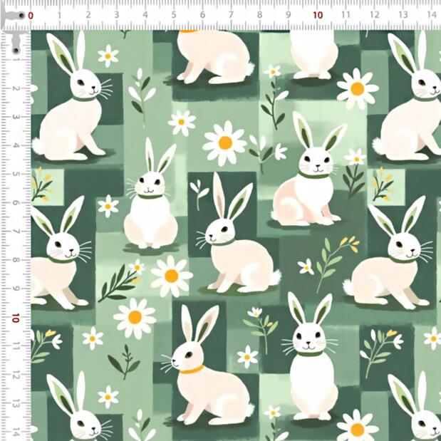Descrição Tecido Tricoline Páscoa Coelhos Fundo Verde