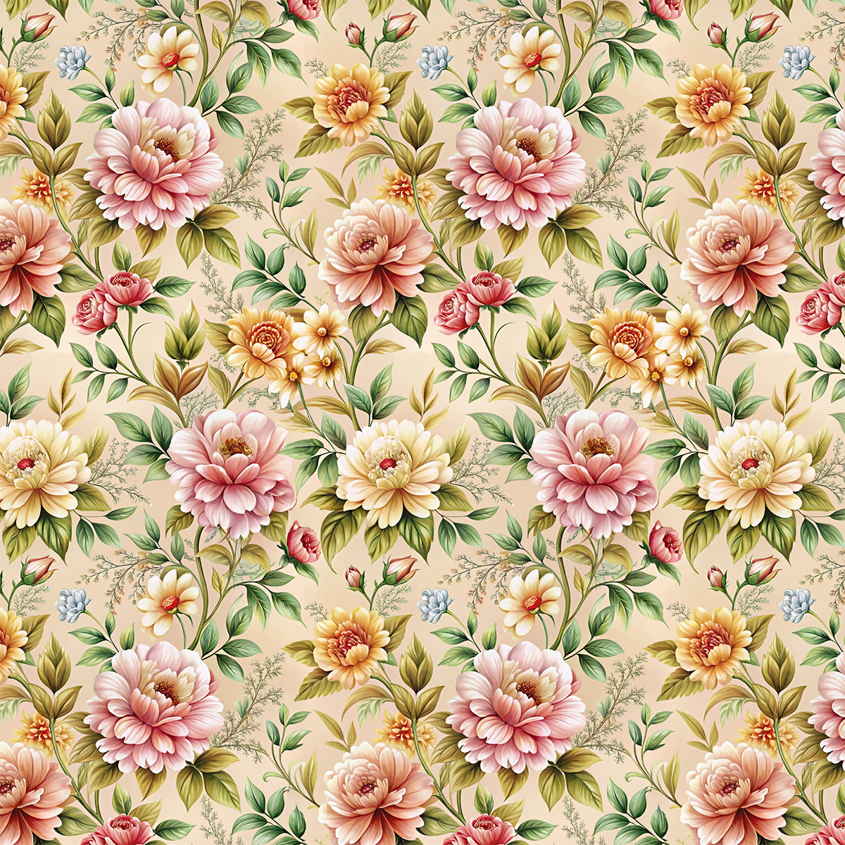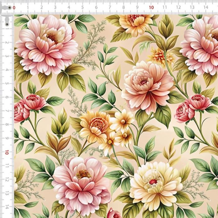 Descrição Tecido Tricoline Peônias Coloridas Fundo Bege