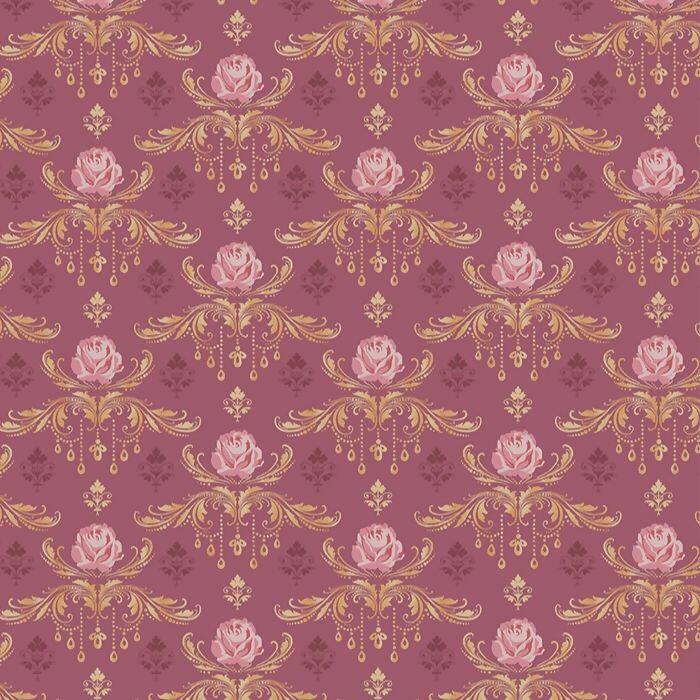 Tecido Tricoline Signature Blush Blossom Rosa com Arabesco Fundo Rosa