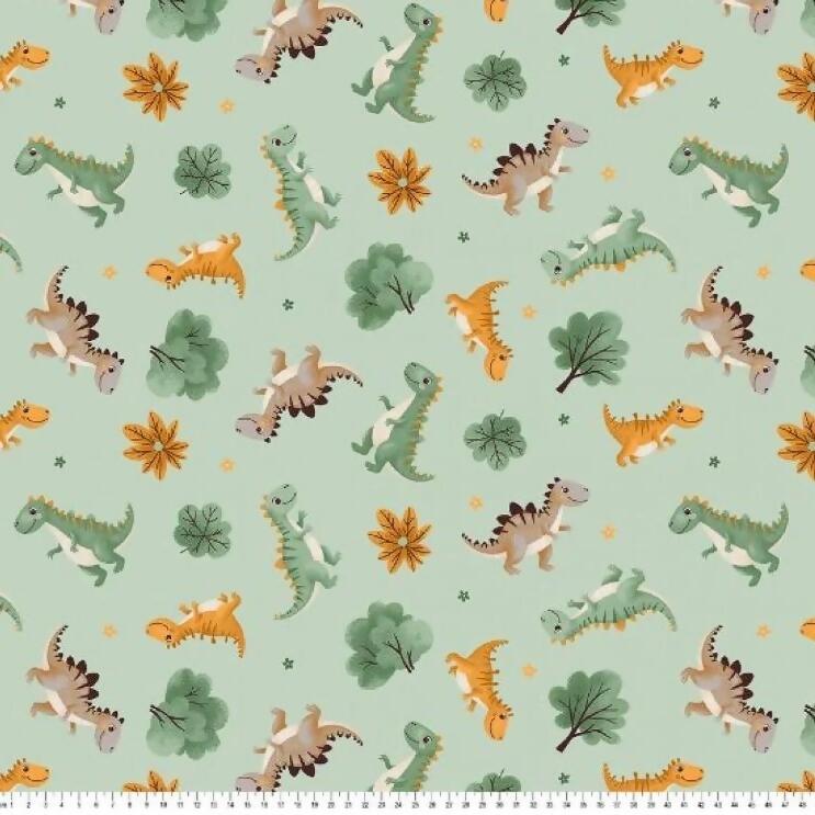 Descrição Tecido Tricoline Tiranossauro Rex Fundo Verde