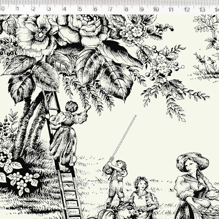 Descrição Tecido Tricoline Toile De Jouy Preto Fundo Off White