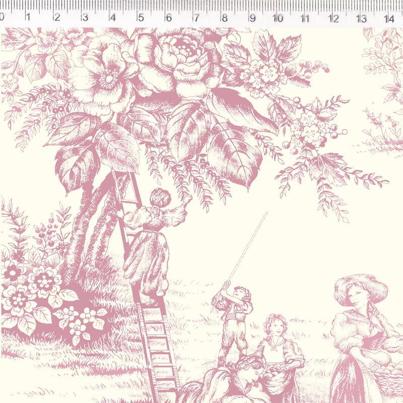 Descrição Tecido Tricoline Toile De Jouy Rosa Fundo Branco