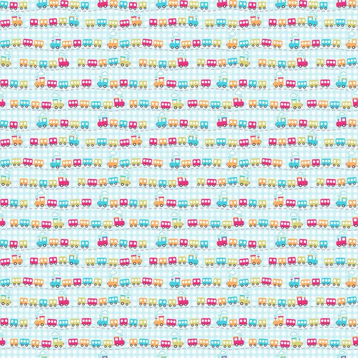 Tecido Tricoline Trenzinho Fundo Xadrez Azul