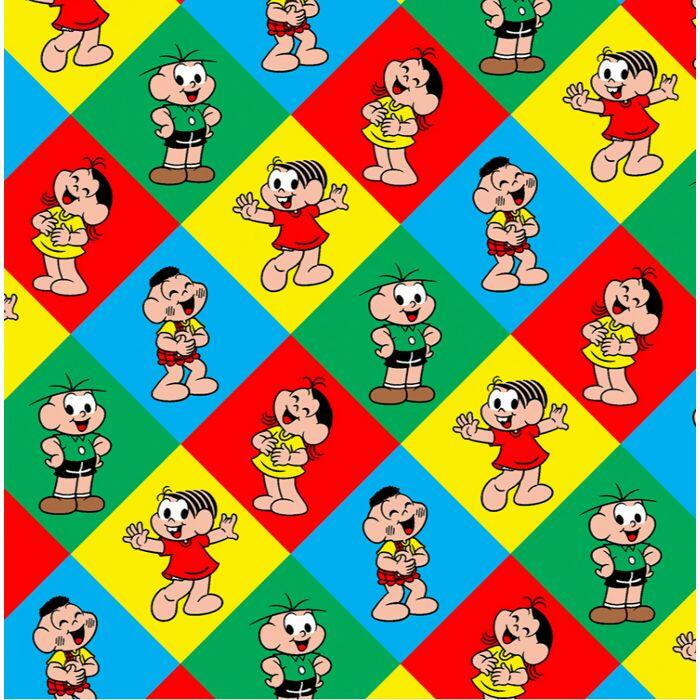 Tecido Tricoline Turma da Mônica Losango Colorido