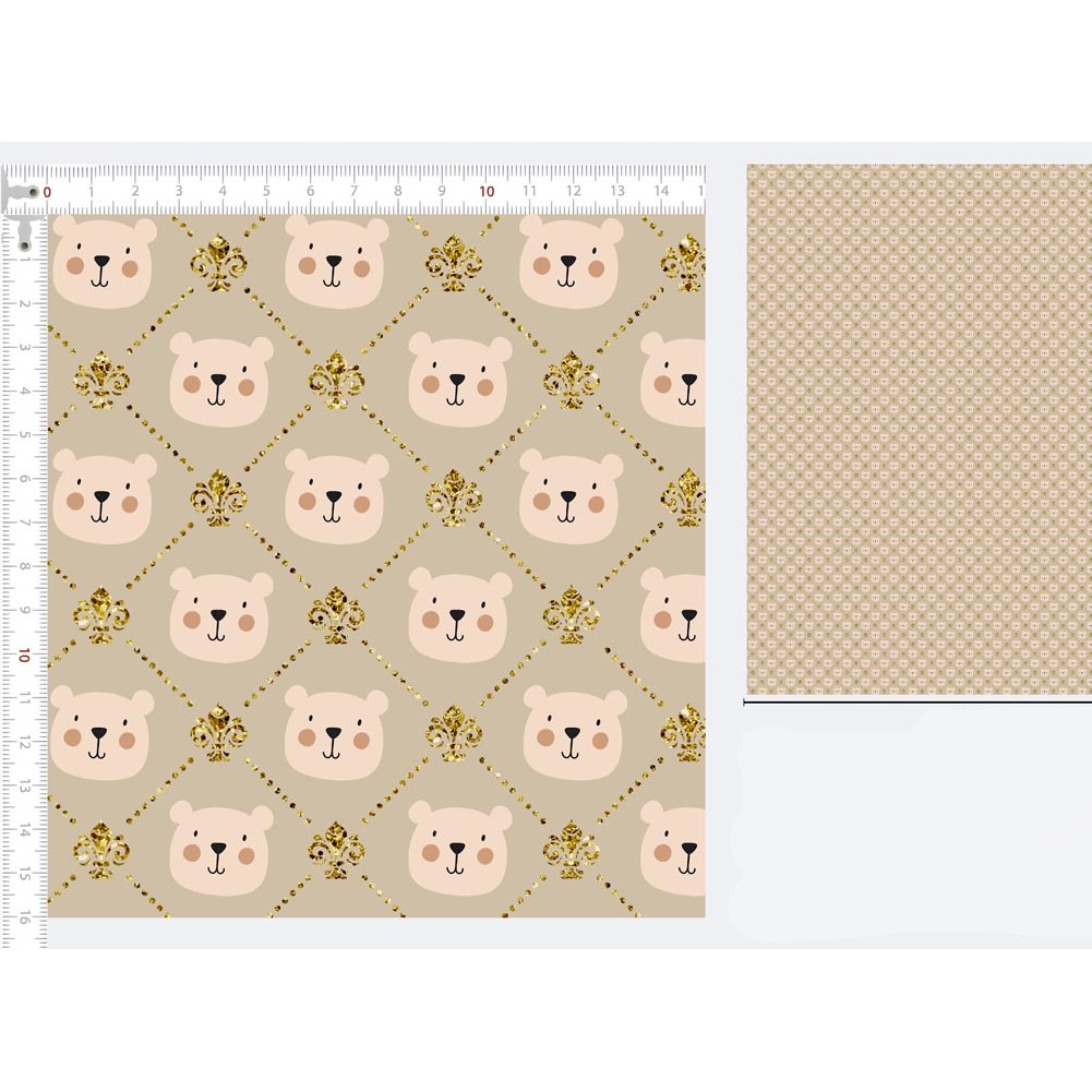 Descrição Tecido Tricoline Ursinho Fundo Bege