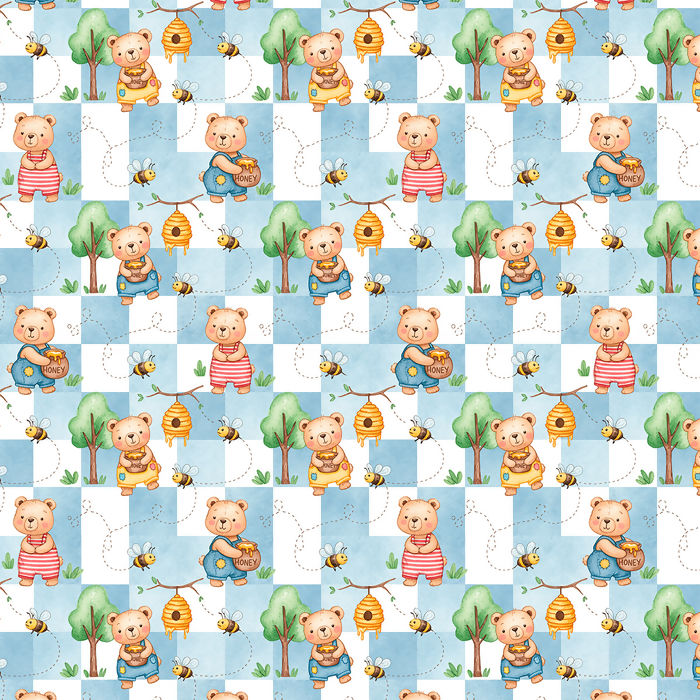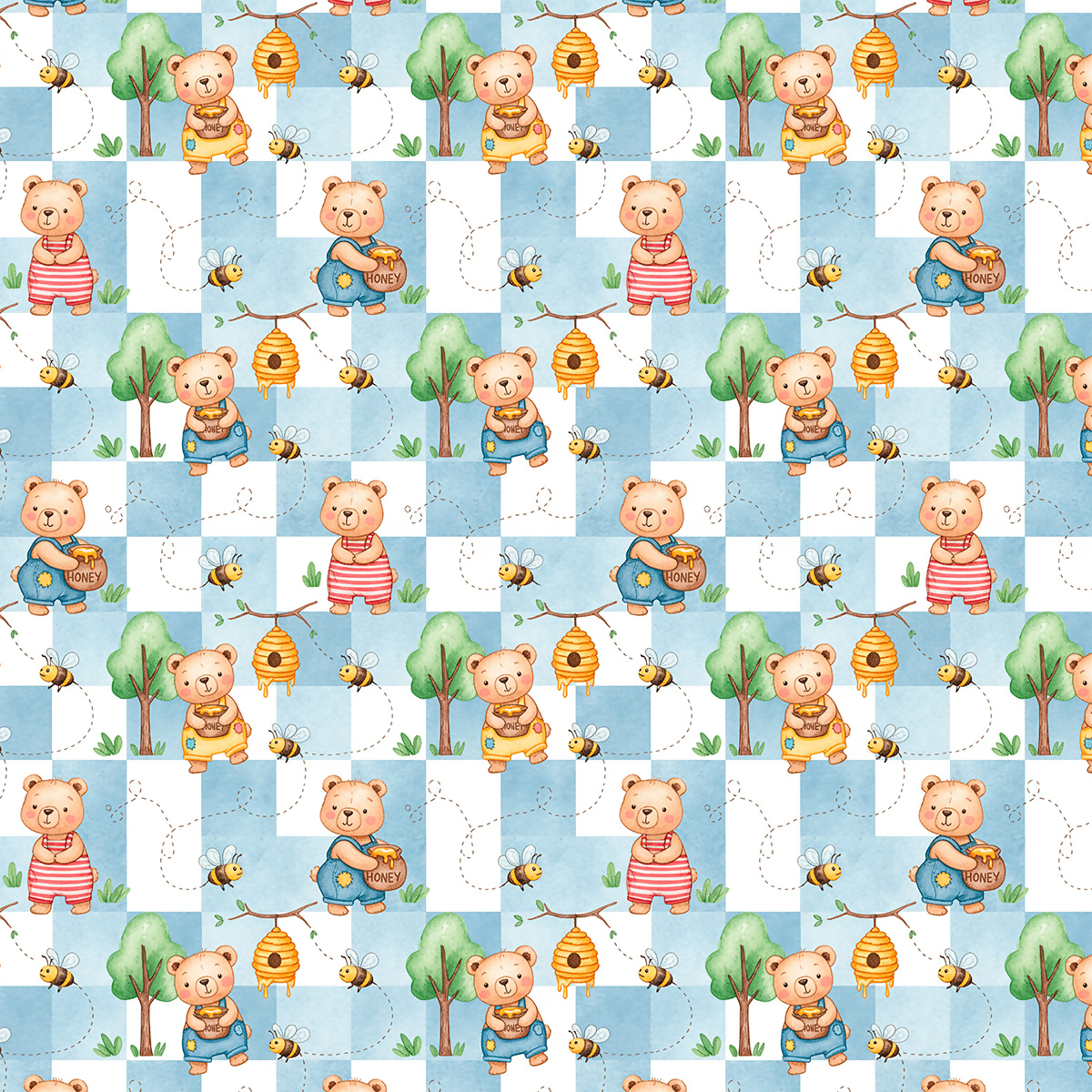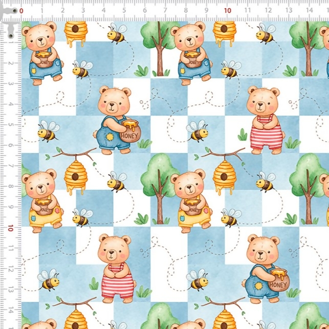 Descrição Tecido Tricoline Ursos Quadrado Azul