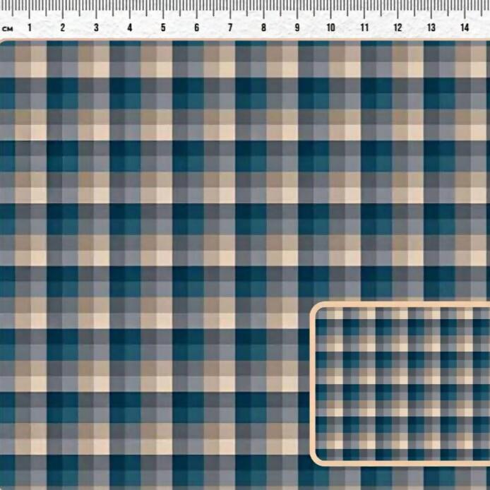 Descrição Tecido Tricoline Xadrez Azul com Caqui