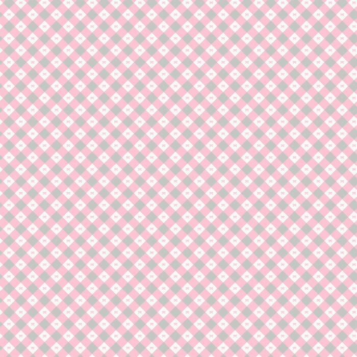 Tecido Tricoline Xadrez Laço Rosa Claro
