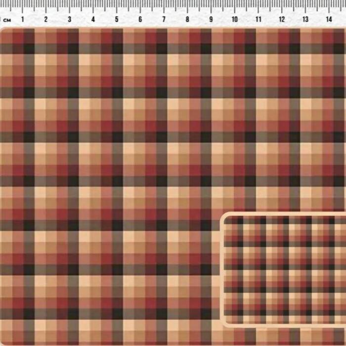 Descrição Tecido Tricoline Xadrez Marrom com Vermelho