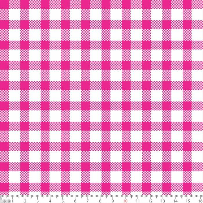 Tecido Tricoline Xadrez Rosa Fundo Branco