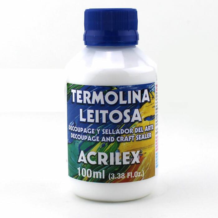 A termolina é um produto líquido a base de resina, água e conservante que promove a proteção de costuras, bordados e tecidos de algodão. Pode ser utilizada também para colagem e impermeabilização de papéis de decoupage e também para endurecer o crochê.