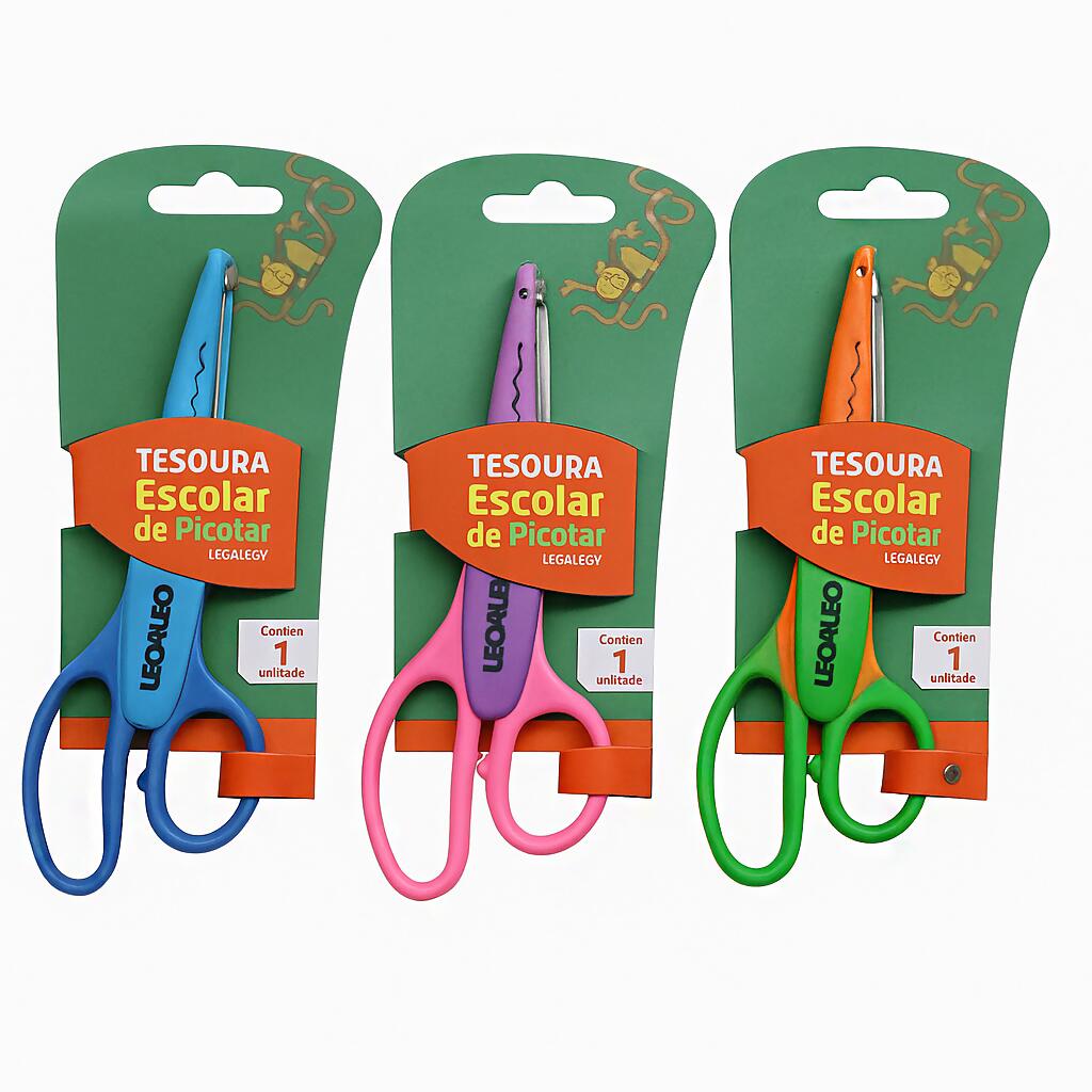 Além disso, a Tesoura Escolar de Picotar está disponível em duas cores vibrantes, tornandoa ainda mais divertida e atraente para as crianças.