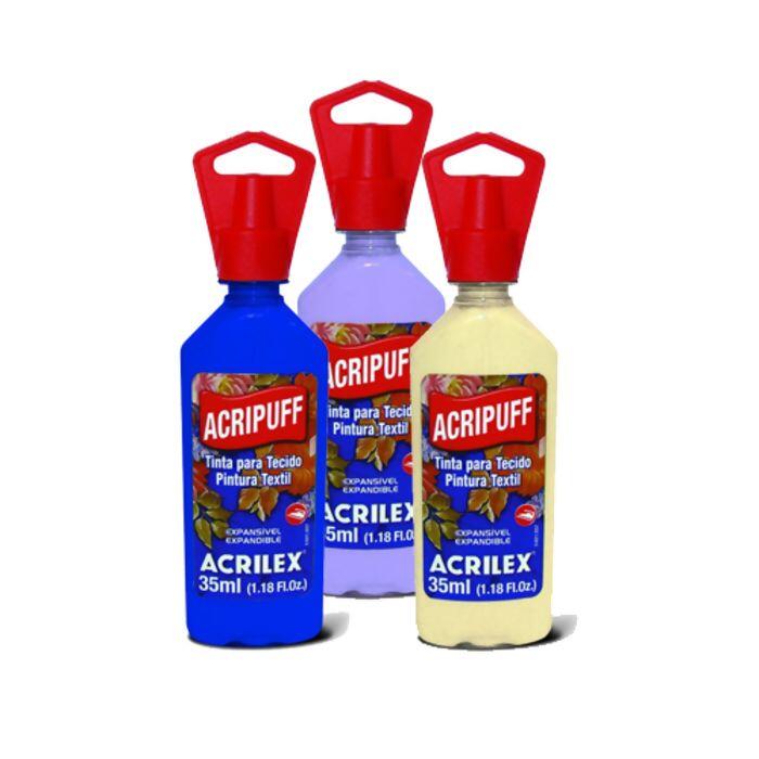 Após a secagem de 24 horas, a tinta Acripuff deve ser expandida com secador de cabelos de alta potência ou passada a ferro na temperatura indicada para o tecido pelo avesso.