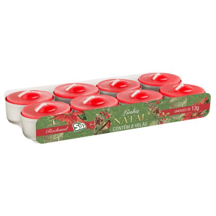 Vela Decorativa Natal Rechaud Vermelha - 8 Unidades