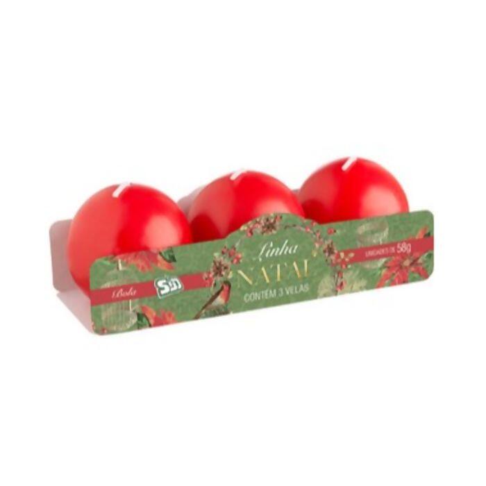 Vela Decorativa Natal Bola Vermelho - 3 Unidades