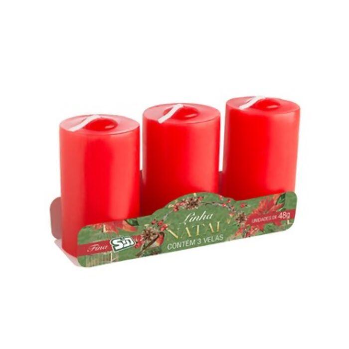 Vela Decorativa Natal Fina Vermelha - 3 Unidades