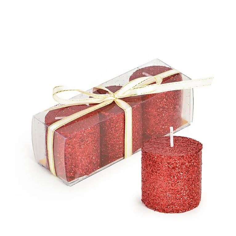 Descrição Vela Redonda Glitter Vermelho 3 Unidades